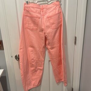 Look: A classic five-pocket horseshoe jean in a coral wash.