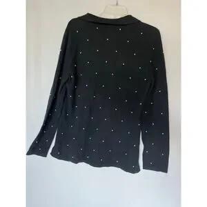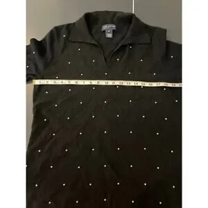 Jones New York Women's XL Black V-Neck Sweater Pearl Embellishments Wool Blend