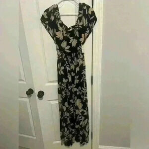 Terra & Sky Women's Plus Size Off The Shoulder Maxi Dress size 0X (14W) Floral Black and Tan, perfect for vacation NWT non smoking home