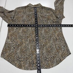 Chicos Top Womens Large 2 Tan Animal Print Button Up Pockets Long Sleeve Career