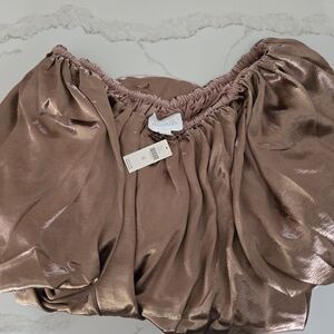 NWT @heynasreen x Mare Mare Off-The-Shoulder Puff-Sleeve Shine Mini Dress