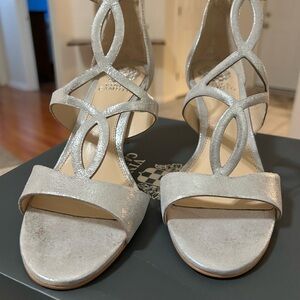 Elegant metallic heels with stylish straps. Perfect for special events.