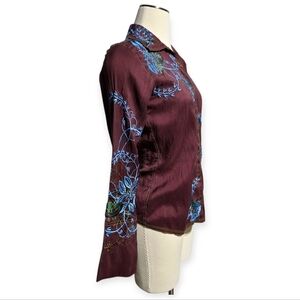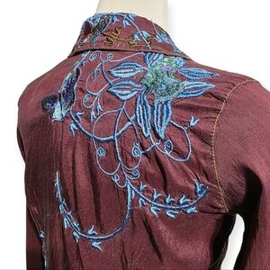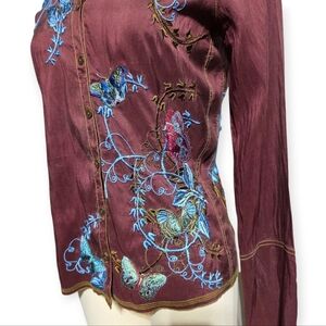 Y2K VINTAGE JOHNNY WAS SILK EMBROIDERED BUTTERFLY BUTTON FLY BLOUSE SZ S