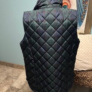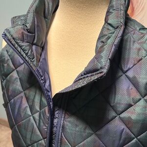 Navy/ Green Tartan quilted vest with a sleek design. Features a front zipper for easy wear. Great winter grab a go piece. Gently used, clean and well cared for. EUC. The size is Medium Tall but fits like a medium just longer in length.