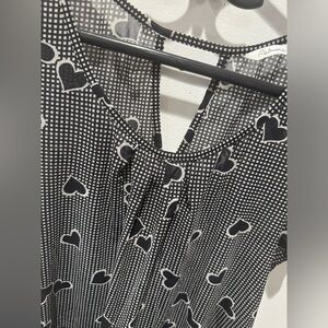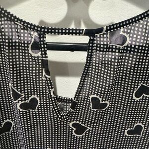 3/$20 Reitmans Sheer Black and White Heart Blouse with ruffle style bottom