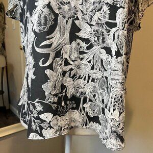 Ann Taylor LOFT Gray & White Floral Dolman Short Sleeve Blouse, Size Small