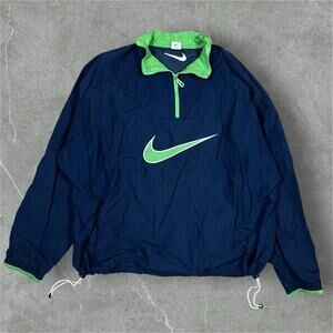 90s Nike Vintage Center Swoosh Pullover 1/4 Zip Windbreaker Blue Green XXL Retro
