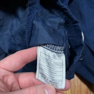 Please note some stain spots pointed out and drawstring waist doesn’t hold as strong anymore, still great vintage piece with big center swoosh and cool swoosh zipper. Size XXL. See pictures for details and measurements. Orders ship out on Monday, Wednesday, and Friday.