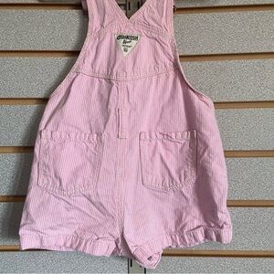 Vintage Osh Kosh Pink White Stripe Shortalls 24 Months Toddler Girl Denim
