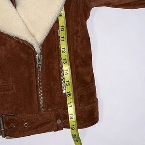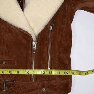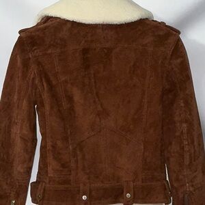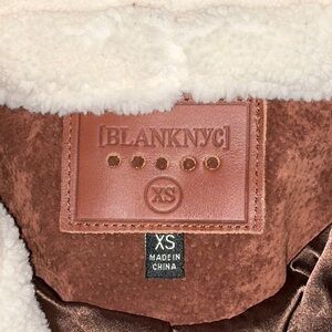 This jacket is in like new condition. I don’t think it was ever worn!! From BlankNYC. It’s 100% Suede-Leather. The faux sheepskin collar can be removed for a variety of looks! (the collar snaps in place. But right now it is sewn in place at the back of the neck - just needs to be cut loose. See picture 8). This is just a really nice jacket! Can be used for cosplay - think Leon Kennedy!