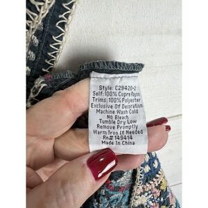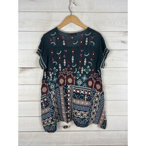 Johnny Was Shirt Womens Small Teal Embroidered Boho Tunic Top Cupra Rayon