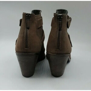 Eileen Fisher Womens List Ankle Boots Peep Toe Brown Leather Block Heel Size 9