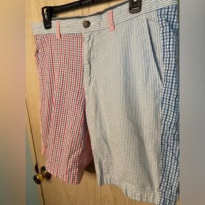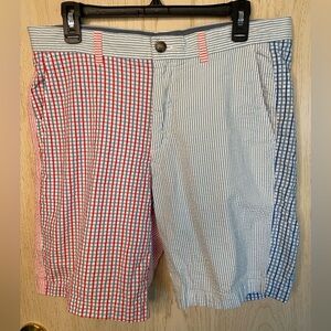 Vineyard Vines Mens Seersucker Shorts Breaker Short 9” Patchwork 33’ Red & Blue