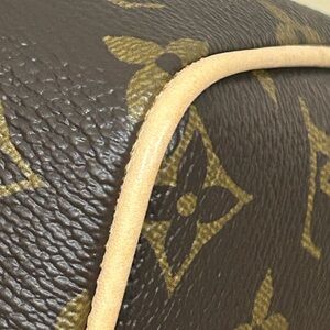 Excellent used condition. Vachetta is still light with very minimal, light water marks. Clean inside. Hardware is gold and shiny. Corners look great with the exception of one having a very small scuff. The only call out is that the handles have a few black marks. I’m not sure what they are from.