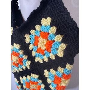 Handmade Granny Square Crochet Shoulder Bag Black Yellow Orange Retro Tote Y2K