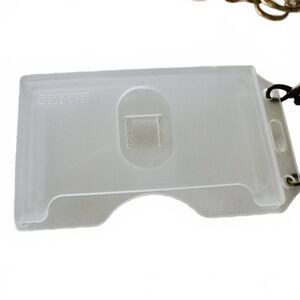 If you are required to wear an ID, this is the perfect Lanyard/ID Holder for you. It is classy whether you dress casually or dressier. The chain has three sizes of gold-tone circular links with antique gold-tone clips that attach to the plastic cardholder. The cardholder can accommodate up to three cards, one on the front and two on the back. Perfect to hold your ID, drivers license, credit cards, even folded cash. It’s convenient when you don’t want to carry around a purse or wallet. The chain is 40” long. The cardholder is 2 3/8” by 4 1/8”.