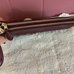 Coach double zippered wallet wristlet. Burgundy pebbled leather. Excellent condition.