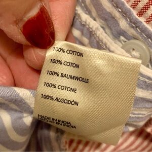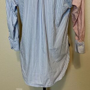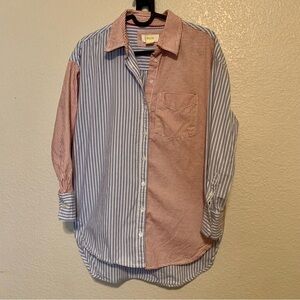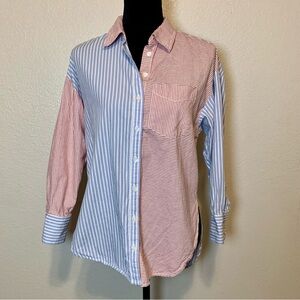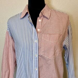 Anthropologie Maeve Bennett Button Down Top Mixed Stripes Oversized XXS Red Blue