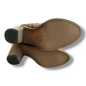 Tonal stitching, a natural stacked heel and gore inset at the back for fit/comfort. The shaft is soft and can be pushed down for a slouchy look.