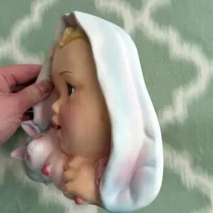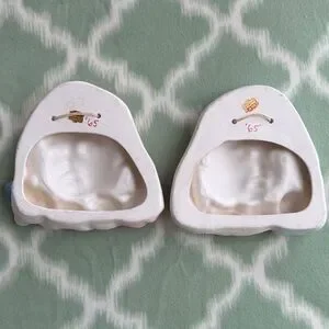 These are a pair of vintage Ucagco ceramic baby wall plaques, potentially from 1965 (they are usually made in the 1950s to 1960s).