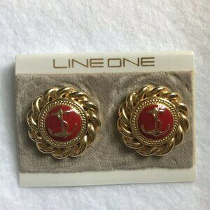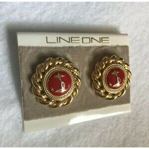 Vintage Anchor Pierced Earrings Line One Gold Red