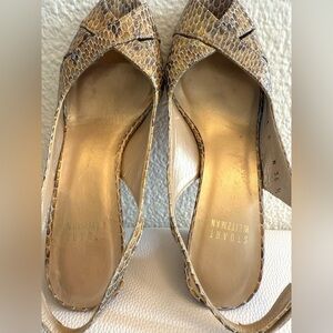 Good condition Stuart Weitzman peep toe sling back snake skin heels