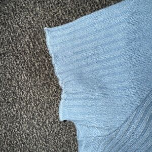 SHEIN Sky Blue Lettuce Trim Rib Knit knotted Ribbed Tie-Front Crop Top