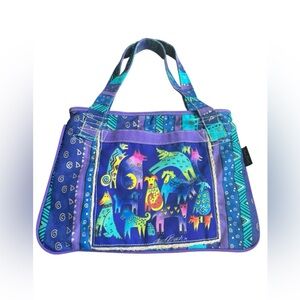 Laurel Burch Dog Print Canvas Tote Bag Purse