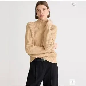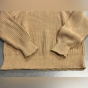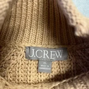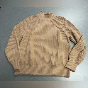 J.Crew Chunky Knit Mock Neck Sweater Tan Ribbed 100% Cotton—XL (Unisex)