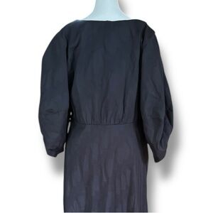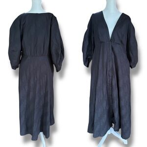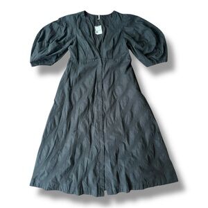 New Free People Lydia Puff Sleeve Button Down Midi Dress in Black | Women’s XL
