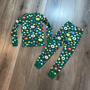 Hanna Andersson Green Floral Pajama Set Winter Long Sleeve Girls Size 120 US 6-7