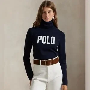 NWT Women’s Polo Ralph Lauren Logo Turtleneck Sweater in hunter navy, size large