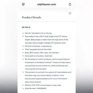 • Size medium has a 22.5" body length and a 27" sleeve length. Body length is taken from the high point of the shoulder. Sleeve length changes 0.5" between sizes. NOTE: this is a size large