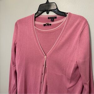 Brooks Brothers Women’s Sz M Pink Silk Cotton Short Sleeve Sweater 2 Pc Set EUC