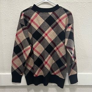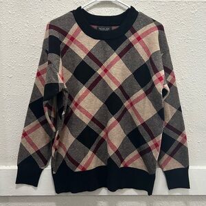 Rachel Zoe Crew Neck Tan Black & Red Plaid Sweater Medium