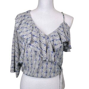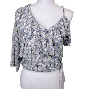 Maeve Anthropologie One Shoulder Pineapple Printed Ruffle Wrap Blouse Size S