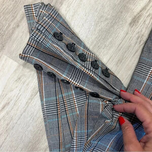 Plaid all over print cropped ankle pants from Talbots. Plaid colors are black, white, blue, and brown. Excellent condition! Perfect cropped ankle pants for fall especially for the office. Love the colors in this plaid pant.