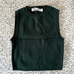 Zara Dark Green Sleeveless Ribbed Crop Top