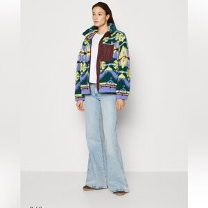 Wrangler Multi Colored Tribal Boho Southern Western Sherpa Fleece Zip Jacket NWT