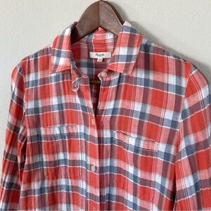 Madewell Skylar Plaid Flannel Shirt | Coral Blue | XS | Lightweight Button Down