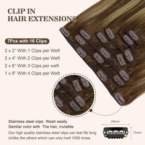 Features: High-quality Remy human hair extensions that are thick, full at the ends, soft, glossy, and silky. Easy to style with curling irons or straighteners, and can be washed. Designed for a comfortable, natural feel, perfect for adding both length and volume. The set includes 7 pieces with multiple clips for customizable fullness.