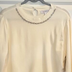 Liz Claiborne Elegant White Sweater Embellished Neckline Size XL NWT
