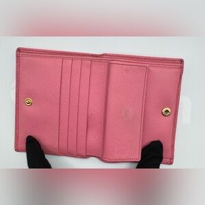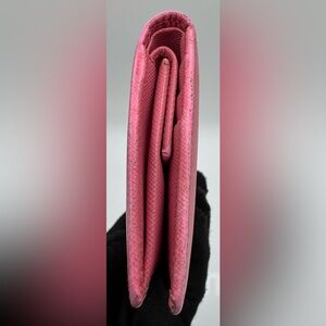 Elegant and stylish, this Prada wallet in a beautiful pink shade is perfect for any occasion. Crafted with precision, it adds a touch of luxury to your ensemble.