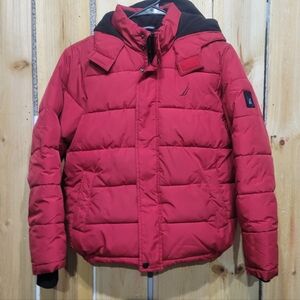 Nautica Youth Boys Puffer Down Jacket Burgundy Water Resistant Size 10-12