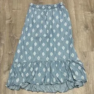 This stylish blue skirt features a unique pattern, perfect for any occasion. Its comfortable fit and elegant design make it a must-have addition to your wardrobe.