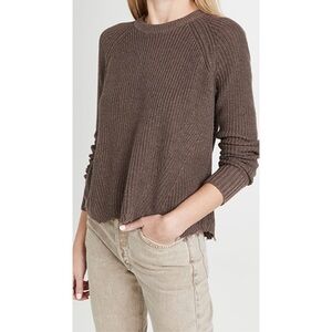 Cotton by Autumn Cashmere Rye Brown Speckled Distressed Scallop Shaker Sweater S