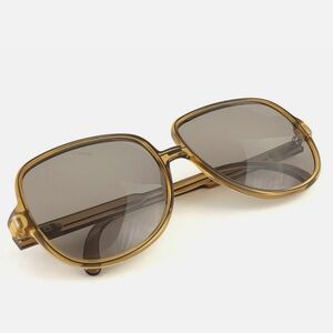 This iconic oversized silhouette features warm amber translucent acetate frames with classic gray lenses — a timeless, fashion-forward shape that reads effortlessly unisex and feels just as relevant today as it did in the golden era of Dior eyewear.