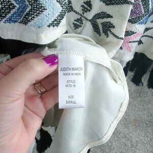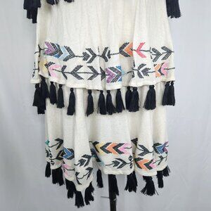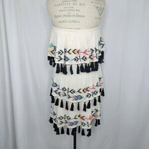 Judith March oatmeal white layered strapless dress with embroidery and tassel details