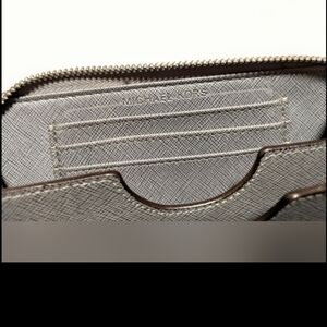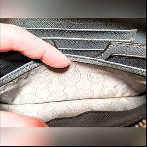 MK croc exterior silver tone zip moderate long wallet. It's in a good used condition with normal wear.