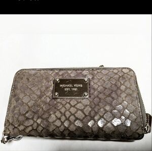 Michael Kors Gray Snake Print pebbled zip Wallet